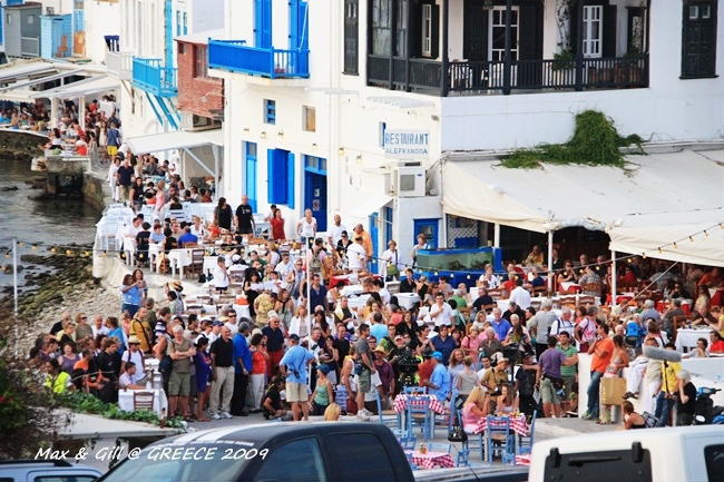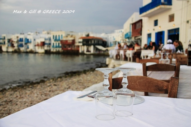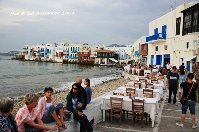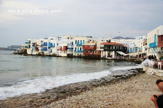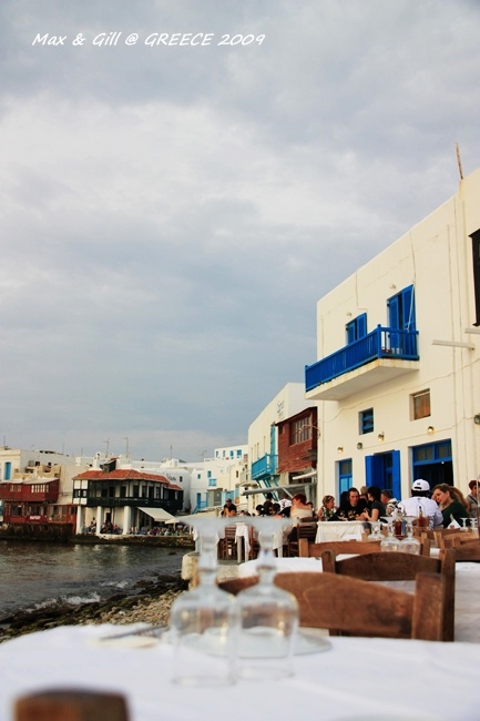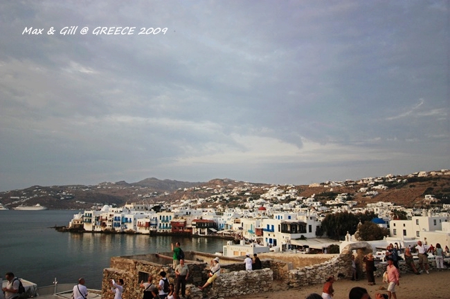 導遊Daniel給了我們相當充裕的時間,在有[愛琴海上的白寶石]之稱的米克諾斯鎮上盡情的迷蹤探險。 出發前看了不少希臘的旅遊雜誌,紛紛提到米克諾斯島上最具盛名的小威尼斯區與卡特米利風車群,說什麼也是非要到此一遊必要之勝地,於是趕著太陽下山前,趕緊飛奔到風車群要來拍下心中構想已久的[剪影]特輯。