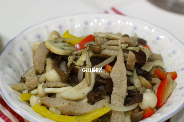 另外要讓顏色看起來更豐富,又加了些甜椒跟黑木耳下去一起拌炒