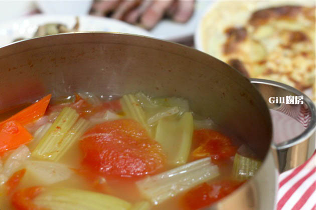 (雖然手心在冒汗....我只會做蔬菜燉雞湯,生病時我最愛喝這道湯品,一碗喝下肚,就覺得感冒好了一大半