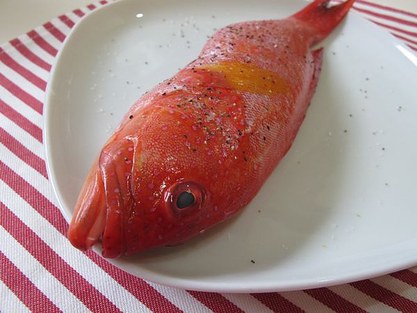 順便也把今天早上在傳統市場買到的新鮮紅條兩面均勻的灑上海鹽跟黑胡椒