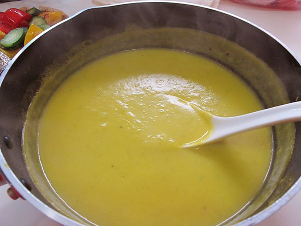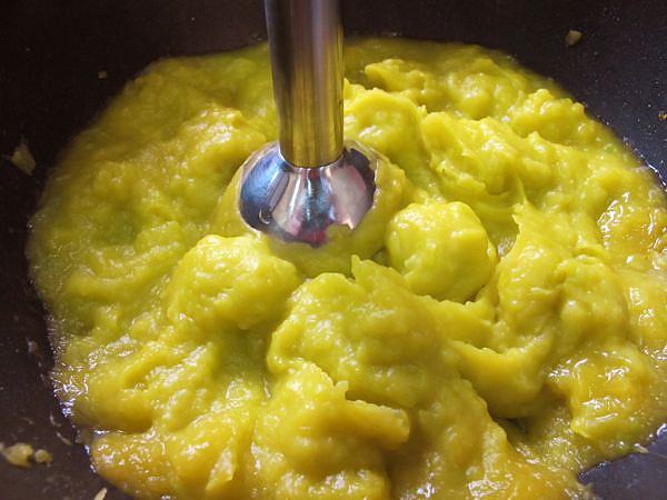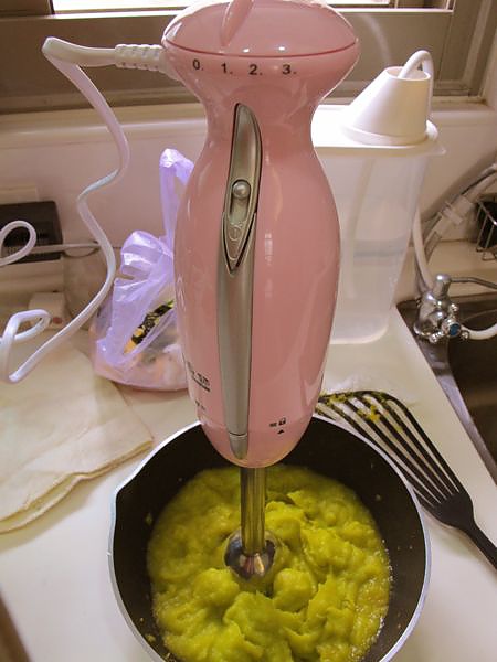 一會兒時間,洋蔥跟南瓜就變成這副泥樣了