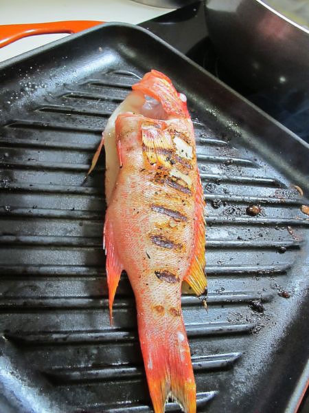 接下來繼續烤魚,因為鑄鐵鍋傳熱速度快、聚熱效果佳的特性,這魚也是同樣不到五分鐘就搞定