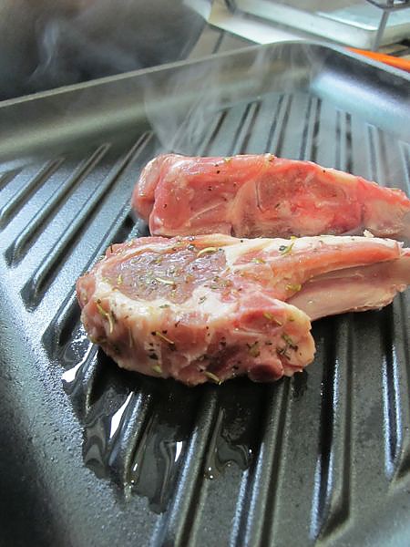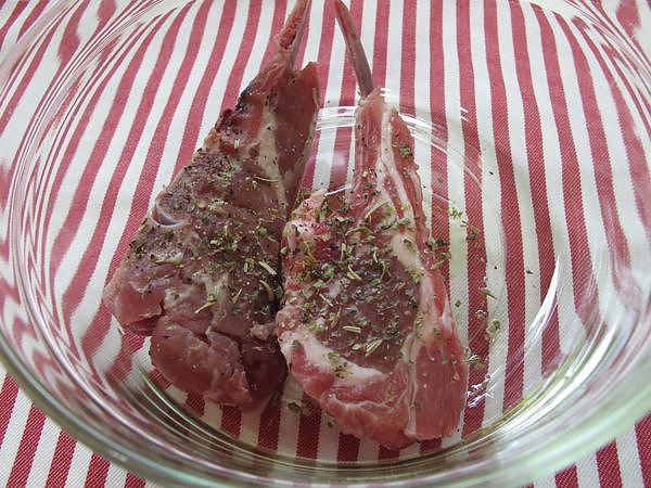 拿出前一晚在citysuper買的紐西蘭羊肩排,用橄欖油跟綜合香料給他馬殺雞一下,然後送進冰箱冷藏約莫20分鐘