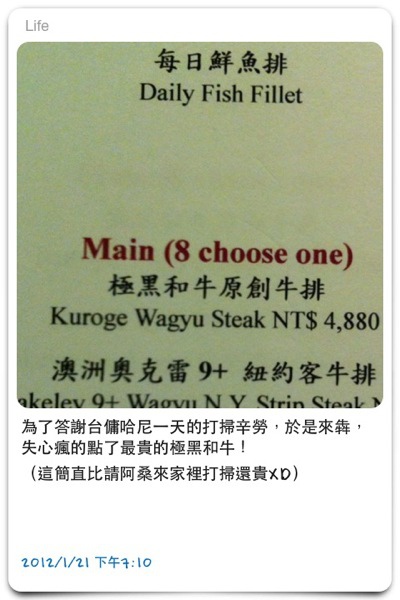 最實質的回饋,就是帶溫ㄤ去吃一頓大餐好好的慰勞一番^^
